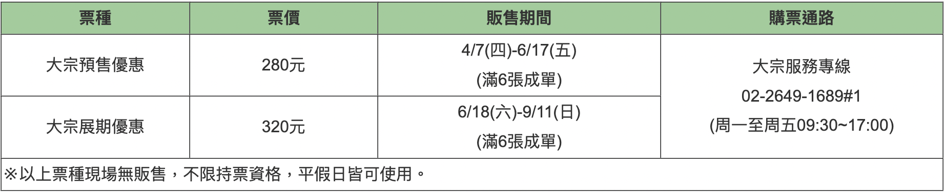 展覽票券最遲須於展覽結束當日辦理。
