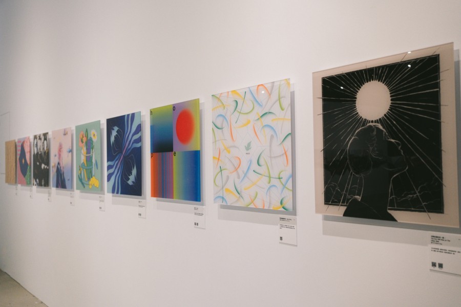 兩旁則是展示 20 位創作者的海報,其中日本設計師矢後直規創作了 3 幅圖像,全區共 22 幅希望的圖像創作。台灣作品包括插畫家包大山〈快樂的形狀〉、川貝母〈靜謐時光〉、設計師楊士慶〈我希望___〉等創作;日本作品包括設計師田中せり〈Hhhhooooppppeeee〉、髙田唯〈彩鶴 〉和清水彩香〈禮物〉……等等,集結不同風格的插畫、設計,如果你是平面設計愛好者,相信這會是大飽眼福的展覽!
