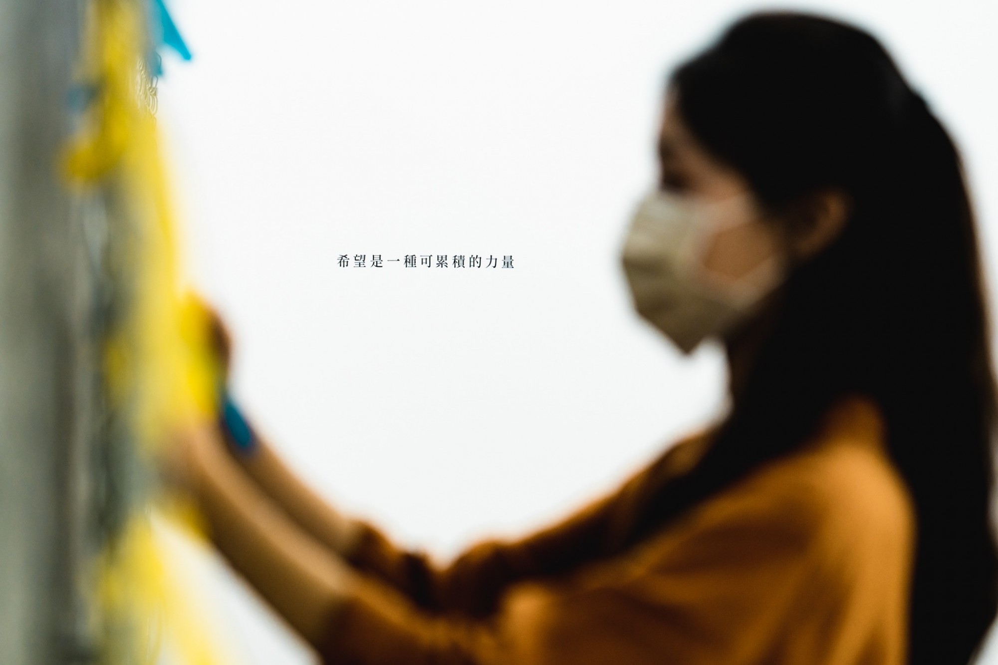 塗鴉圍牆是向這世界的動盪與惶恐發聲,頌君也發文說道:「尋求存在感的過程中,會選擇控制自身以外的人事物以達到安定的心理狀態。也許自我認同是和平世界的那一小步,不要再和自己打架了吧!」面對不安,最終回歸內心、找尋自我認同才是真正的安定,因此邀請觀者在圍牆背後一同繫起絲帶集結信念,用希望的力量打破隔閡。
